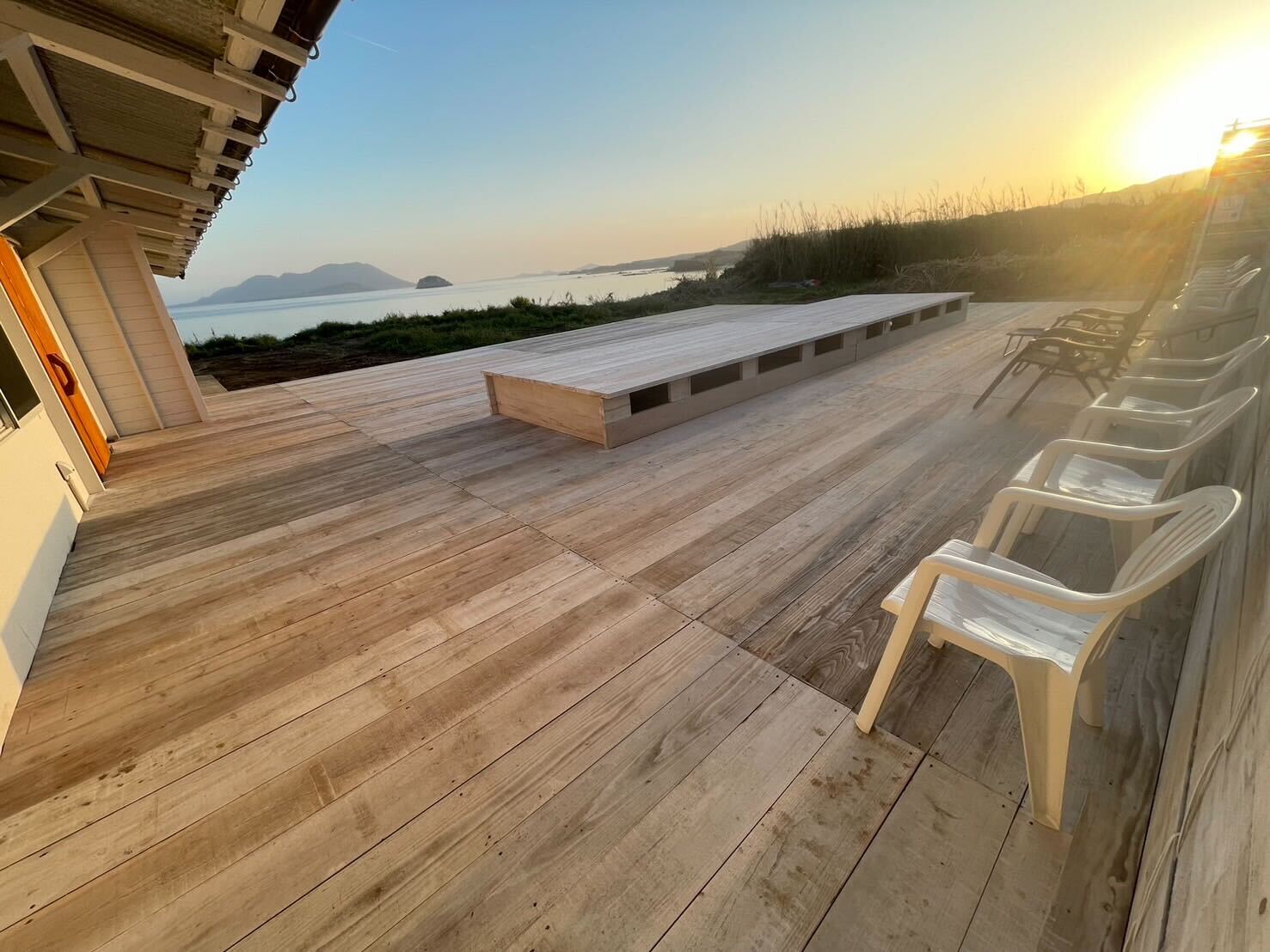 そんな折、「自動車のご縁」で初めて宇久島を訪問。島を歩くうち、会社でも催していたサウナイベントの記憶がよみがえり、「ここでサウナをつくれたら絶対に気持ちいい」と直感しました。観光協会や行政に相談すると、「公衆浴場がないから、ぜひ」と後押しの声。物件探しから改装まで、業者さんとともに自らも手を動かし、元牛舎の骨格を生かしたUKUSAUNAが誕生しました。オープンから約2年。伊藤さんは北九州と宇久島の二拠点生活。月に1~2週間は島に滞在し、今も通い続けています。